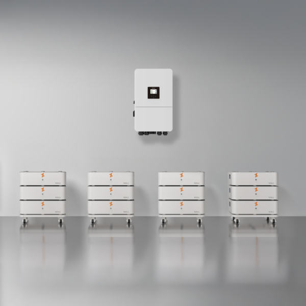 SET 12 L bestaat uit een thuisbatterij met een capaciteit van 61.44 kWh en een 3-fase hybride omvormer met een vermogen van 15 kW. De set bevat standaard de VOLL®-AI module, deze module zorgt ervoor dat je alle data kunt uitlezen in de VOLL® APP.