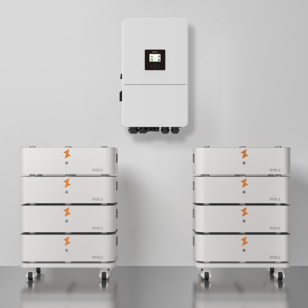SET 8 L bestaat uit een thuisbatterij met een capaciteit van 40.96 kWh en een 3-fase hybride omvormer met een vermogen van 15 kW. De set bevat standaard de VOLL®-AI module, deze module zorgt ervoor dat je alle data kunt uitlezen in de VOLL® APP.