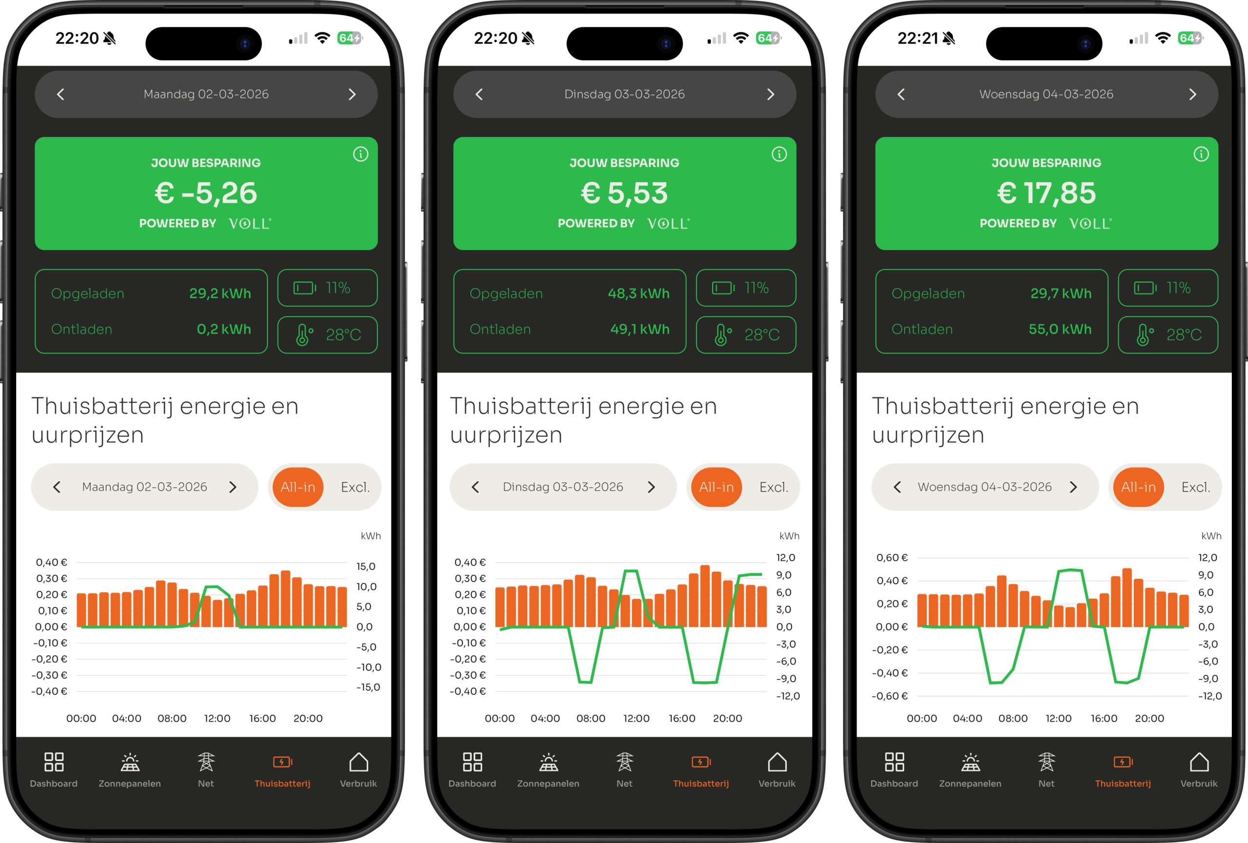 In het onderstaande voorbeeld zie je goed hoe negatieve dag besparing werkt en zie je meteen wat de batterij zo slim maakt.