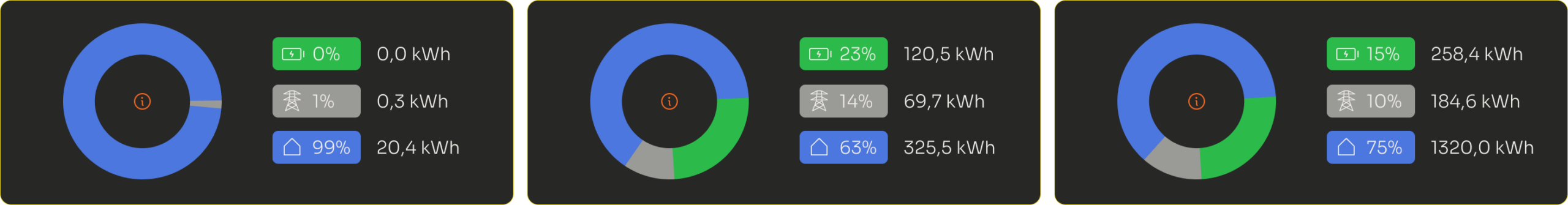 In het energiediagram van de zonnepanelen kun je precies zien waar jouw zonne-energie direct naar toe is gegaan. Er zijn drie mogelijkheden: